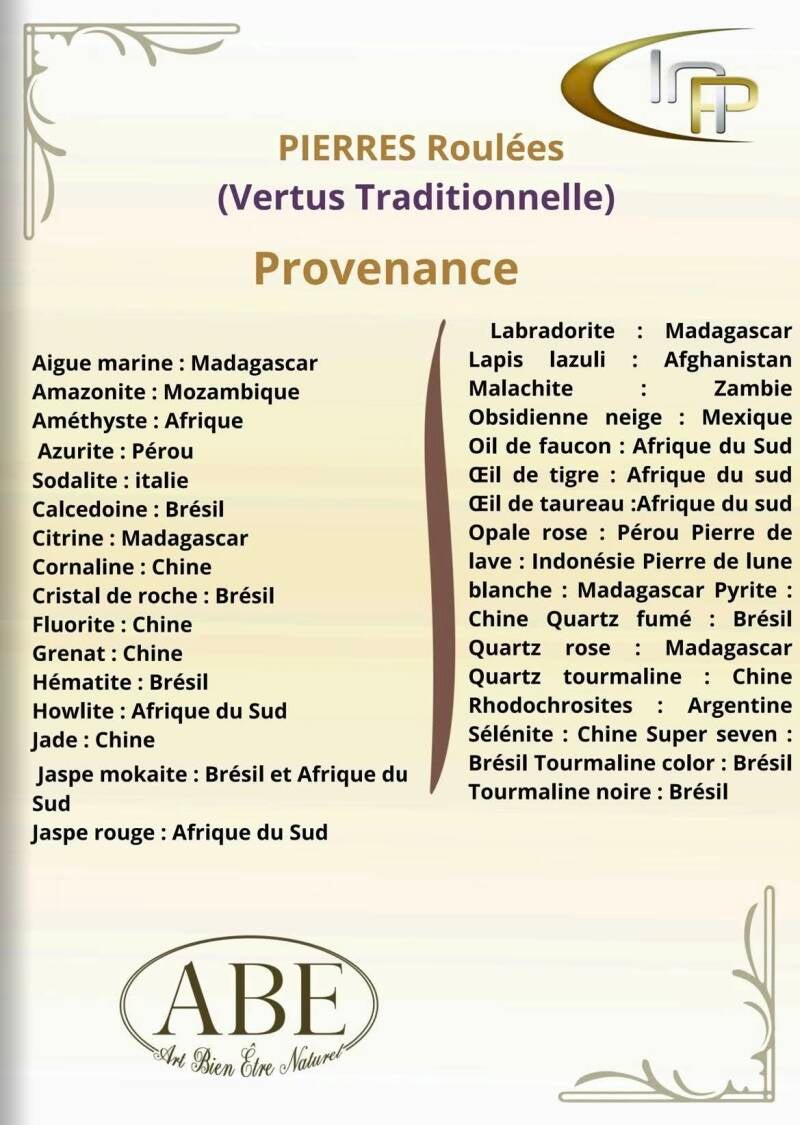 Bienvenue dans notre collection de Pierres roulées. Découvrez des bijoux uniques en pierres naturelles pour la lithothérapie et l'ésotérisme. Chaque pierre a ses propriétés bénéfiques et symboliques. Plongez dans un univers de bien-être et de spiritualité avec ABCreatif La Boutique d'Angelique.